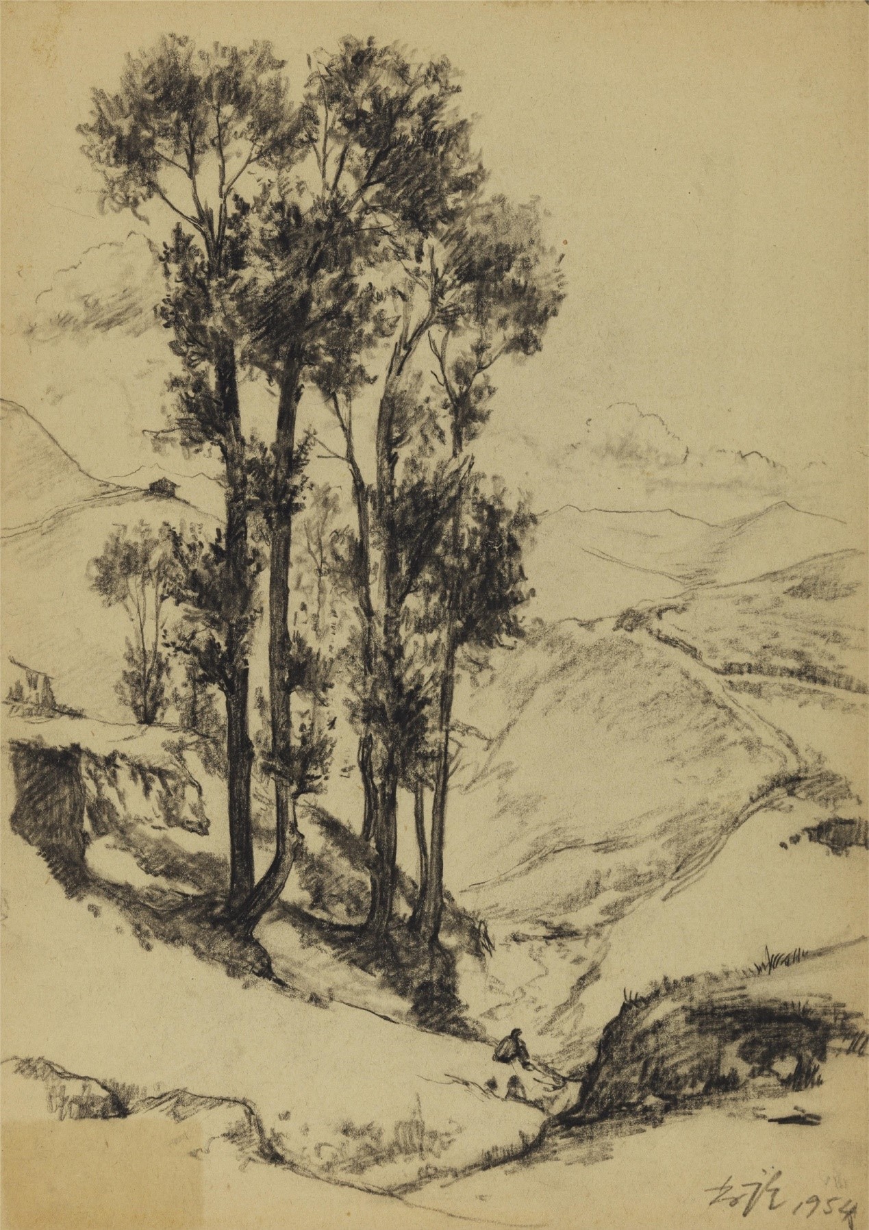 乌鞘岭 靳尚谊 素描 纸本 1954年 长39cm×宽27.5cm 中国美术馆藏