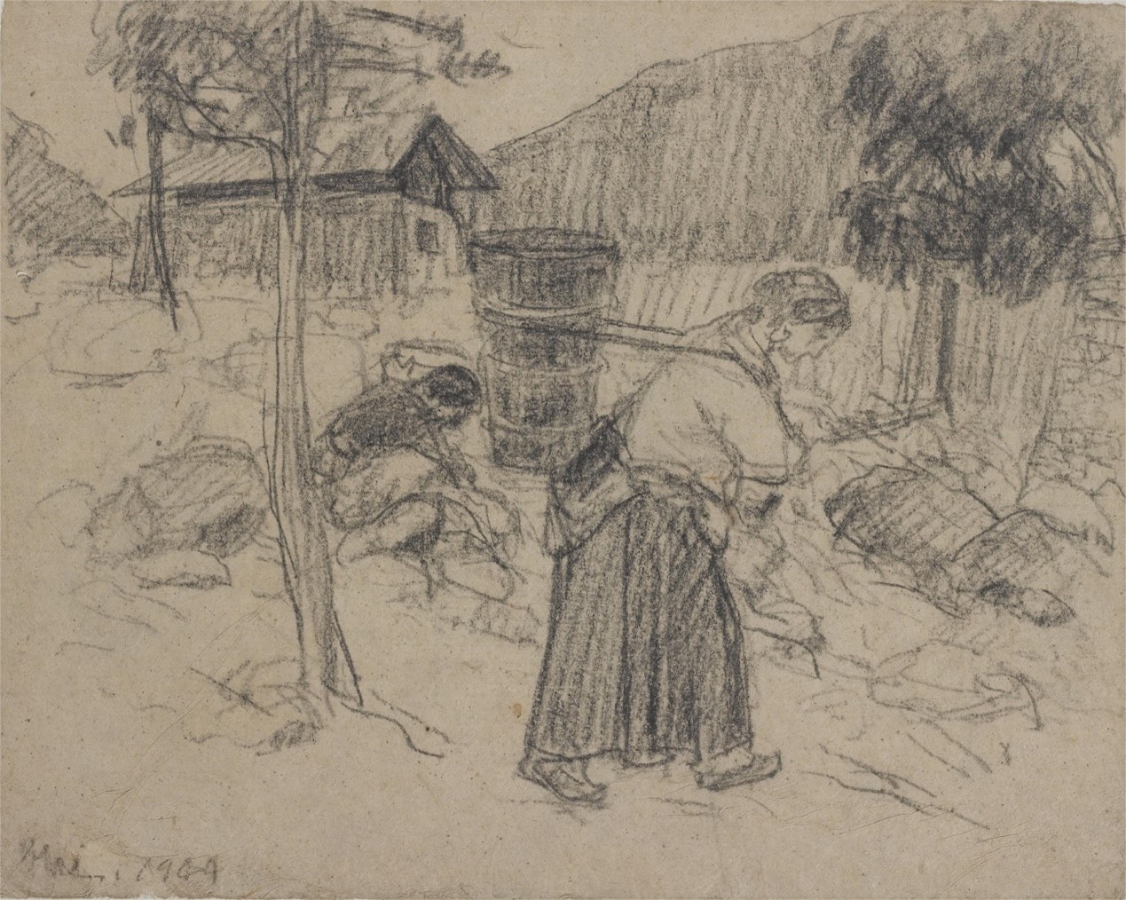 负水女 吴作人 素描 纸本 1944年 长21.5cm×宽27cm 中国美术馆藏