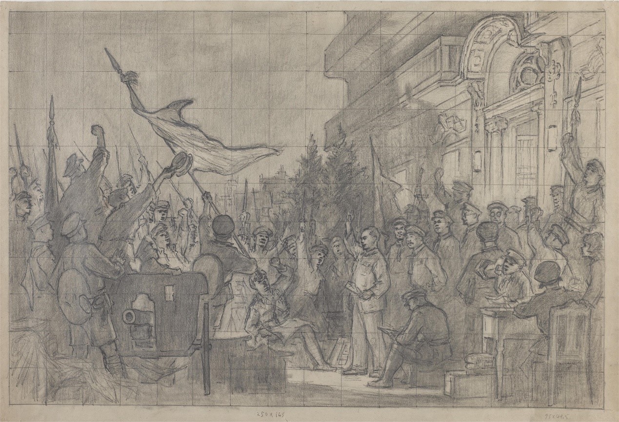 南昌起义稿3 莫朴 素描 纸本 1956年 长49cm×宽74.5cm 中国美术馆藏