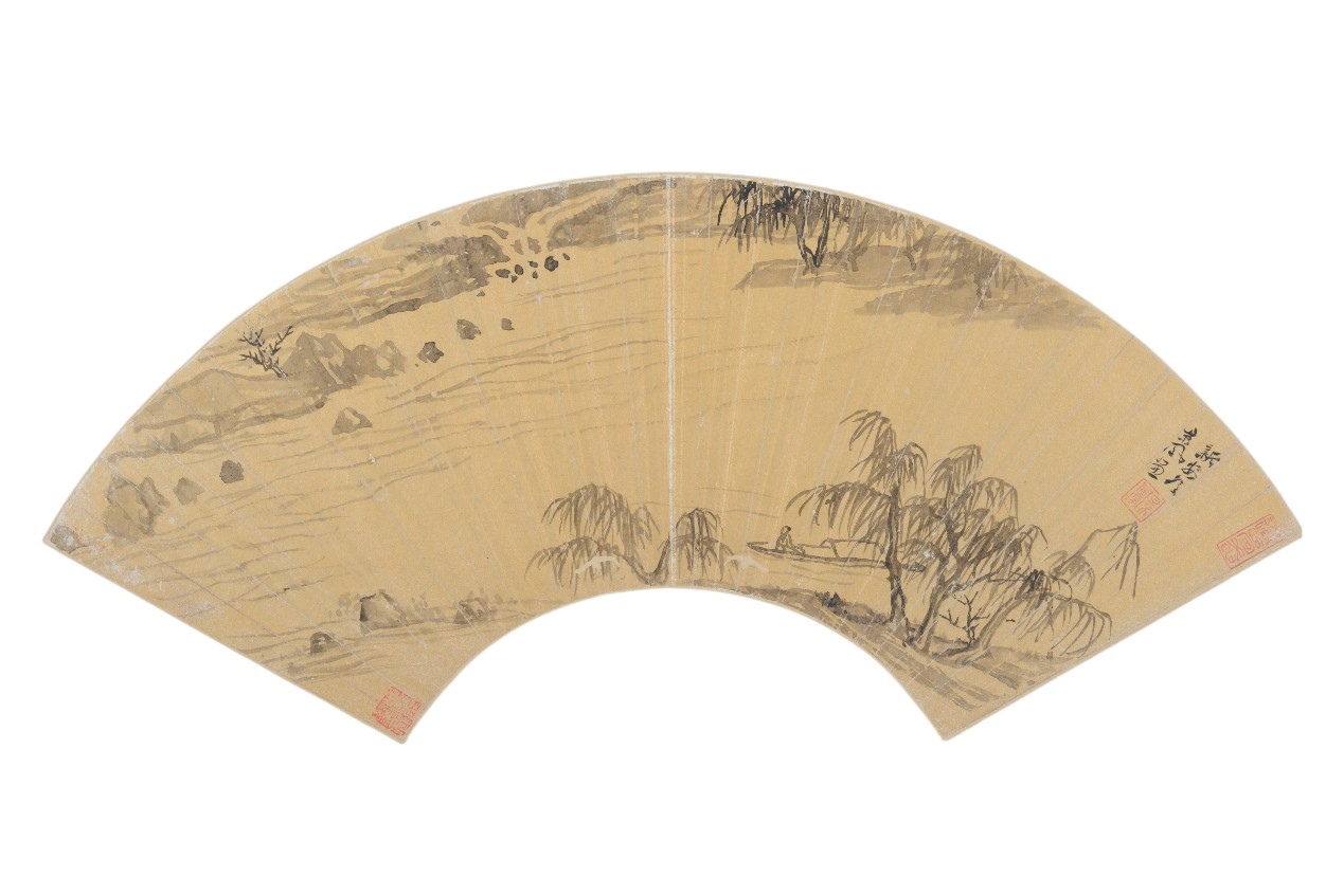 詹景凤 柳汀春涨图扇页 纸本水墨 16.6×51cm 明 安徽博物院藏