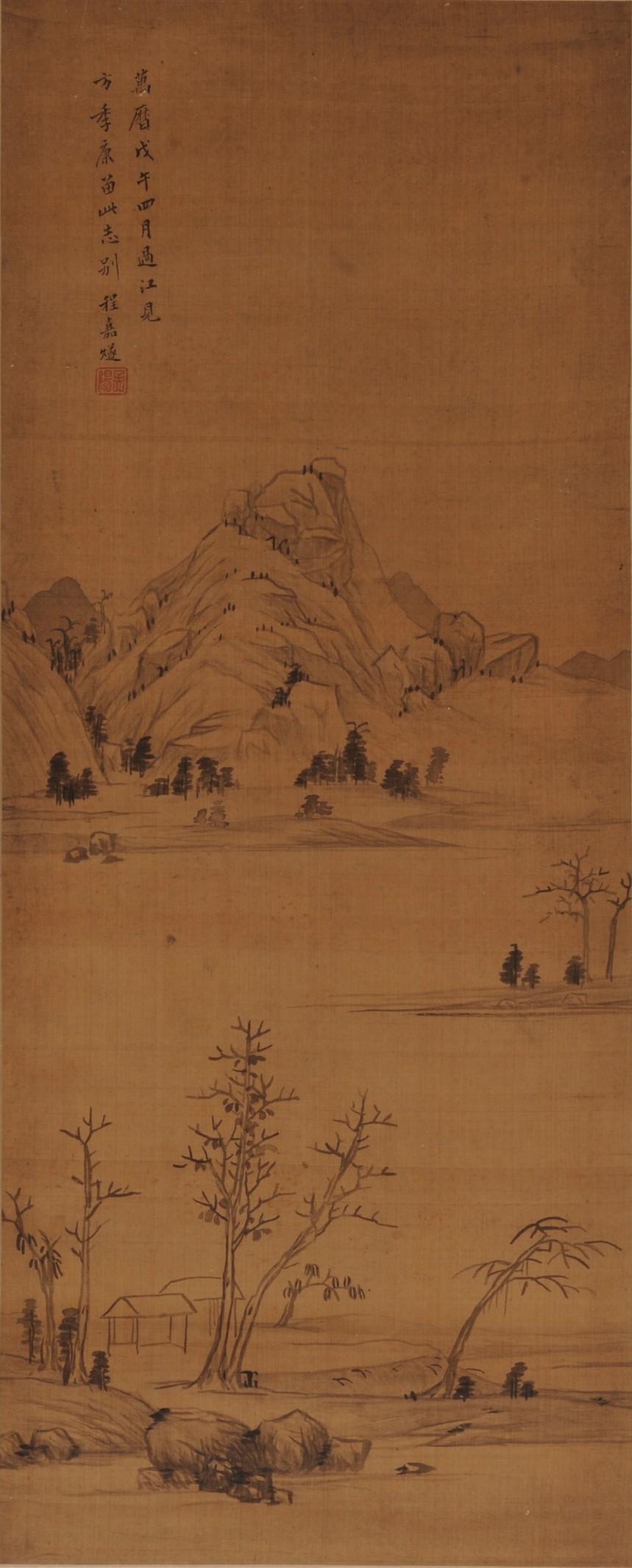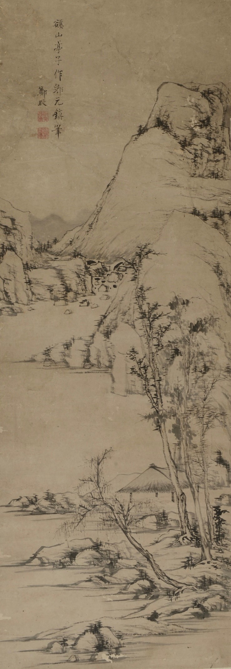 程嘉燧 远山古屋图轴 绢本水墨 72×29.5cm 明 安徽博物院藏