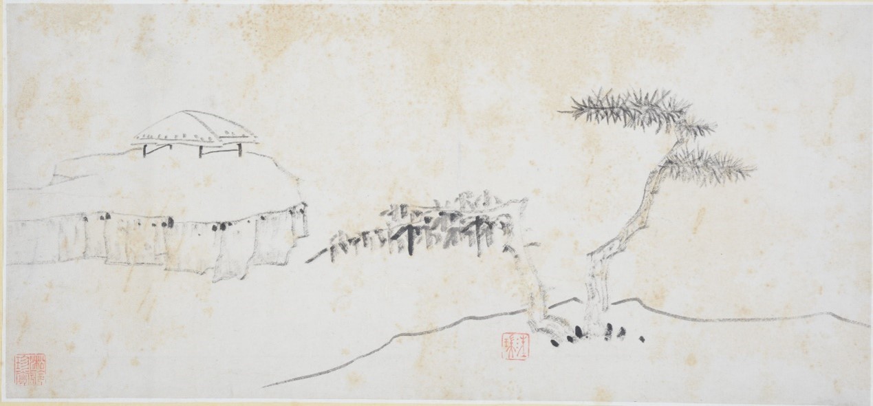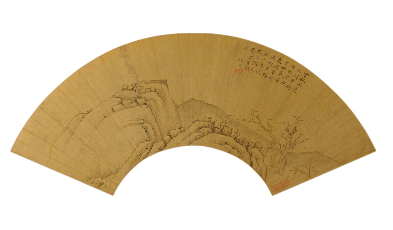 孙逸 东岗三树图扇页 纸本水墨 15.5×50cm 清 安徽博物院藏