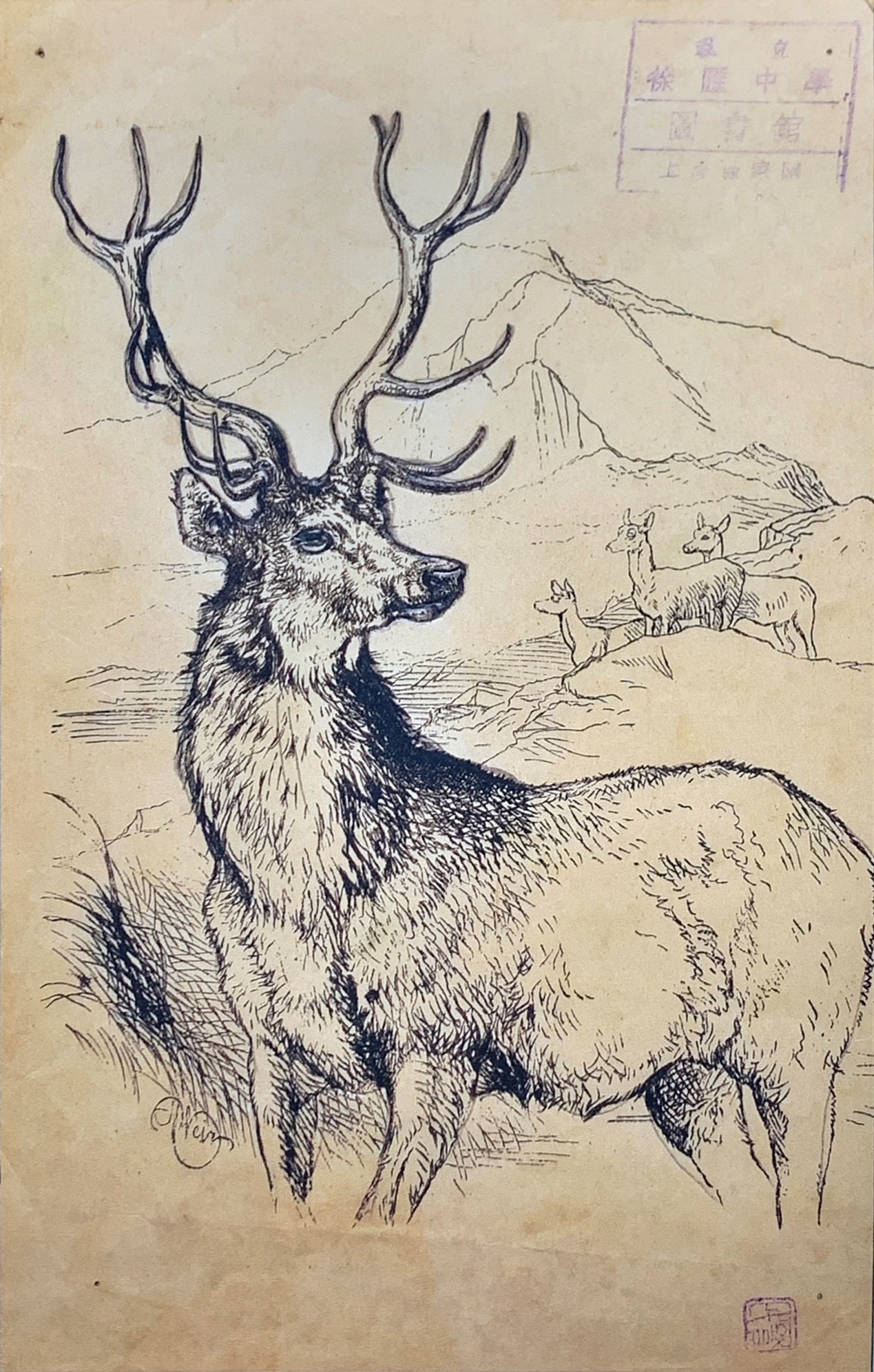 徐汇中学学生作业 凝望 铅笔素描 19×26cm 1920年