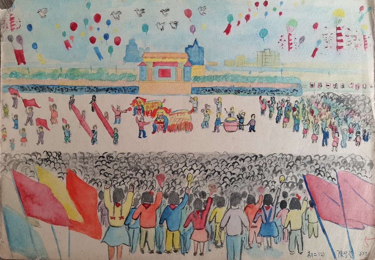 陈学贞(初二)国庆 铅笔淡彩 19×26cm 1956