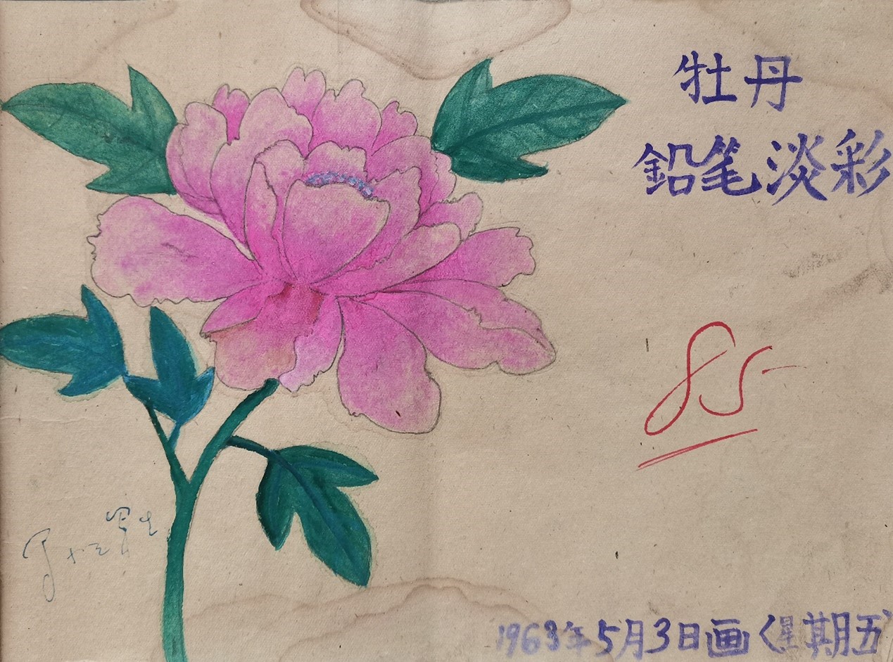 马永保(五年级)牡丹 铅笔淡彩 19×26cm 1963