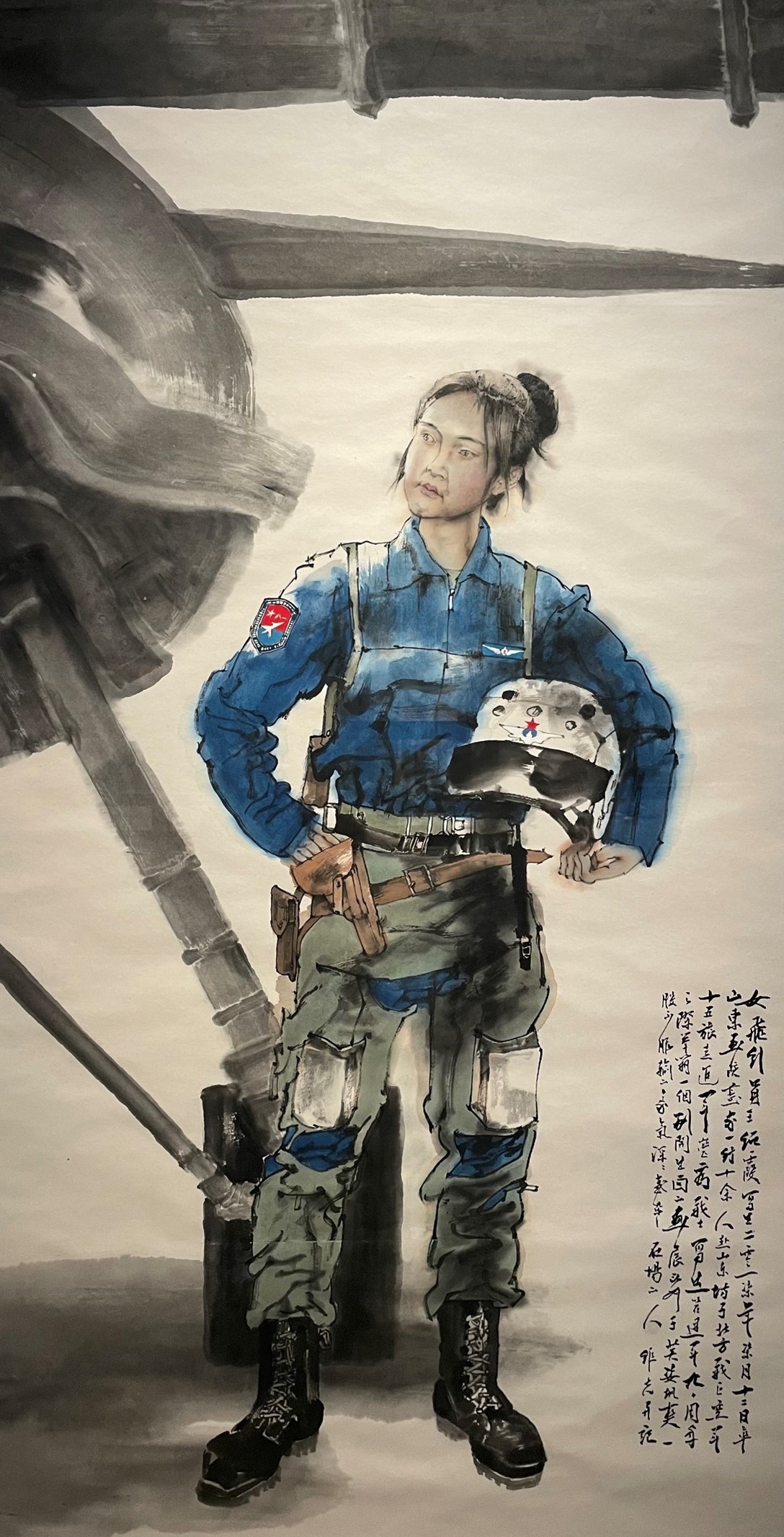 6、空军水墨人物写生——女飞行员王绍霞 2017 孔维克180×96cm中国美术馆藏