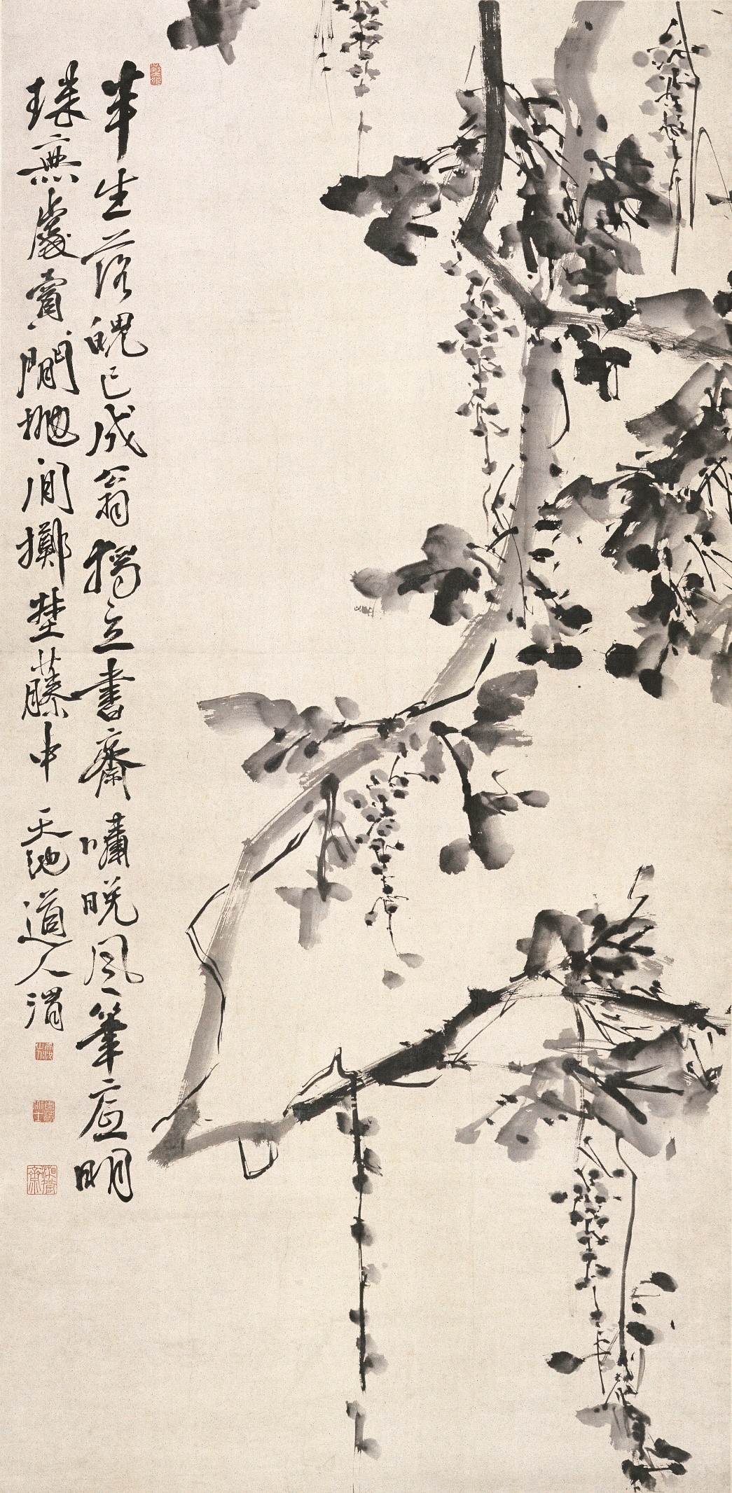 徐渭 墨葡萄图轴 纸本 184.8×94cm 明 浙江省博物馆藏