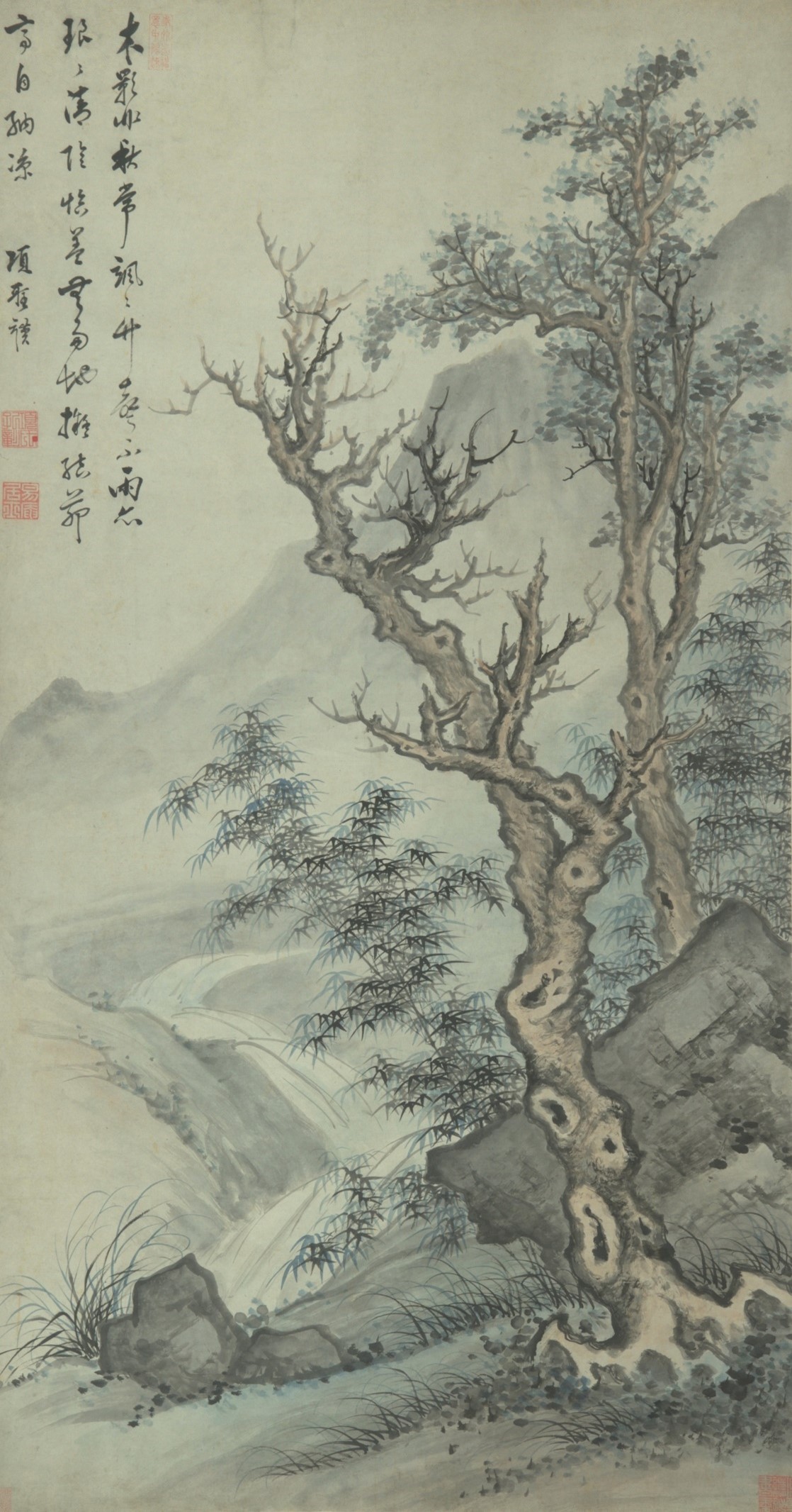 项圣谟 竹声木影图轴 纸本 168.8×89.9 cm 明末清初 浙江省博物馆藏