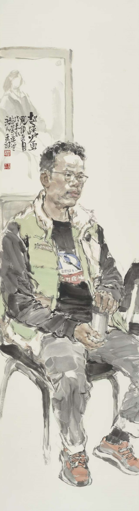 生活中朴素而深刻的瞬间,常常激发王珂强烈的创作冲动。他的写生作品不局限于对专业模特的刻画,朝夕相处的学生、邻里间的保安以及陌生人……都成了其作品中的主角。写生不仅是锤炼造型能力的重要途径,更是反映对画面抽象结构的关注。扎实的造型能力与抽象观念的结合,使作品能超越自然形态的束缚,展现出自由心象。在王珂创作中,“抽象”与“写实”是相辅相成的,二者共同构成对现实主义水墨人物画的理解与追求。