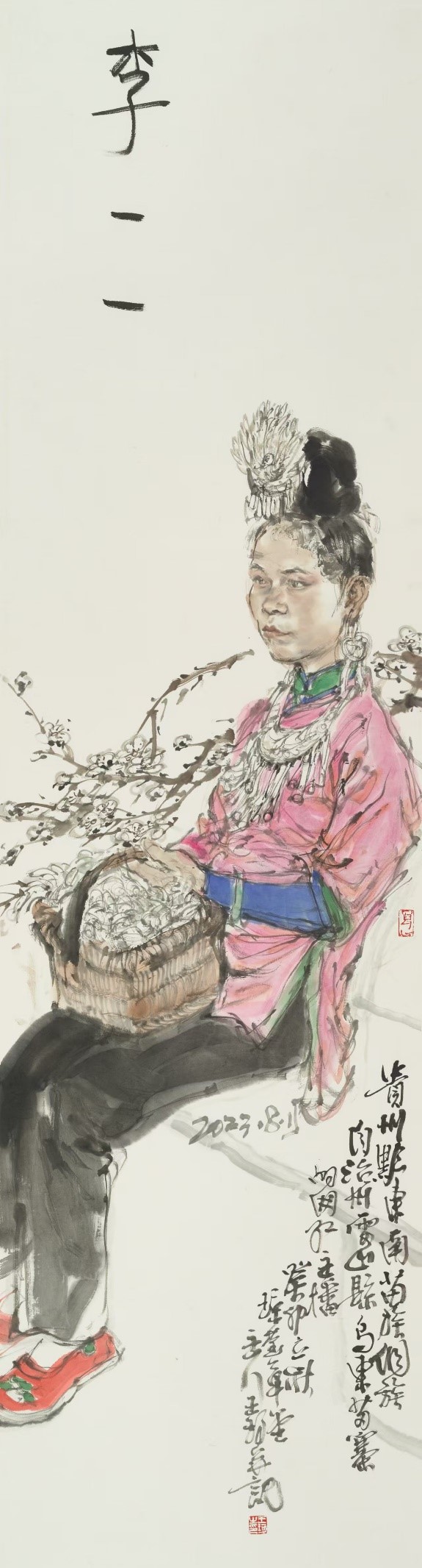 侗族姑娘 王珂 中国画 48×180cm 2023年 个人收藏