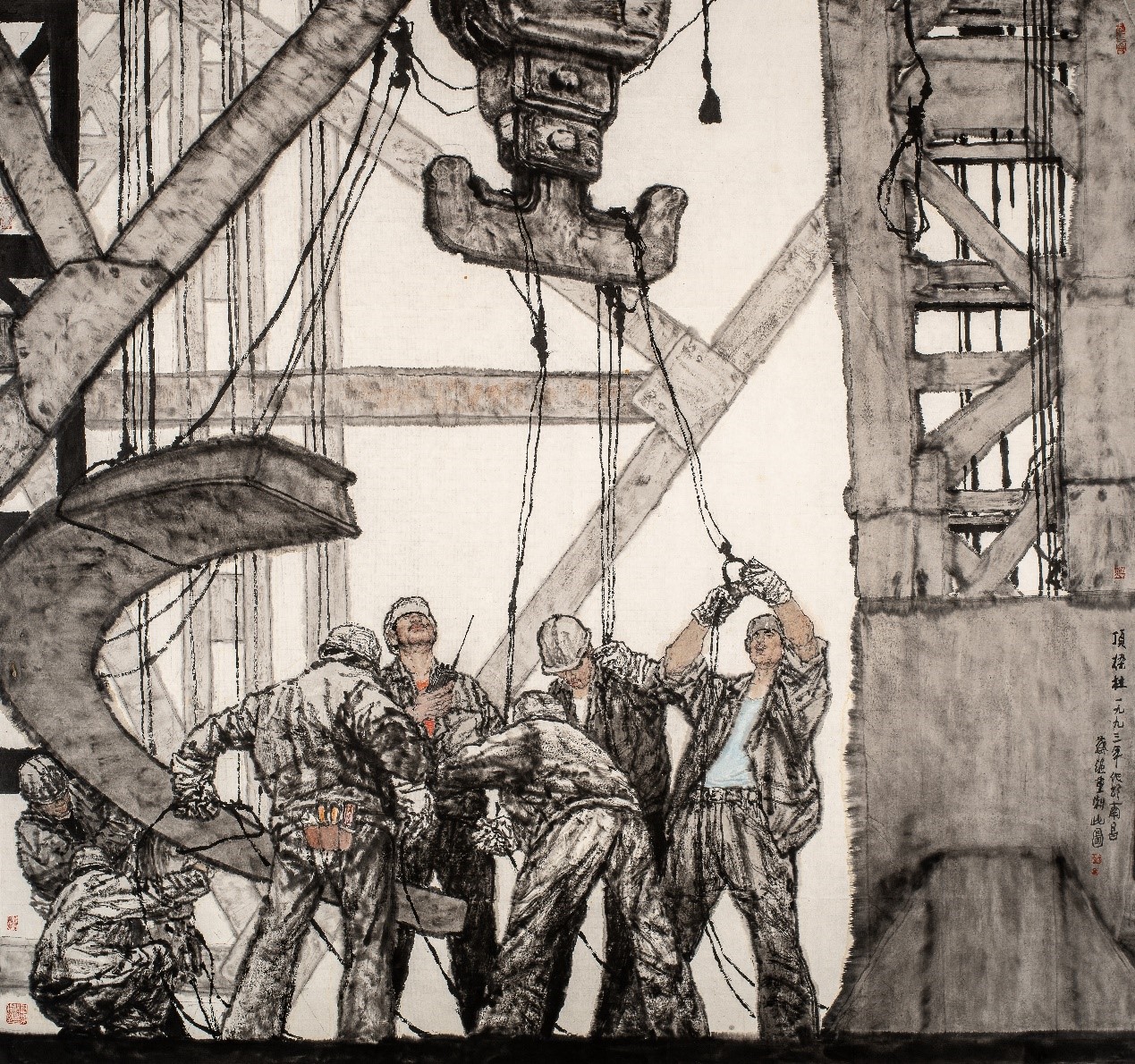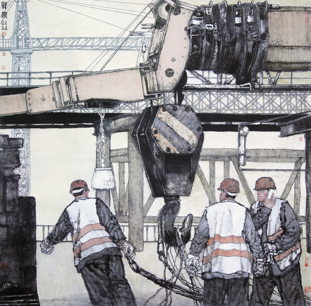 3.工人·工地(一) 蔡超 国画 200×200cm 2023年 个人收藏