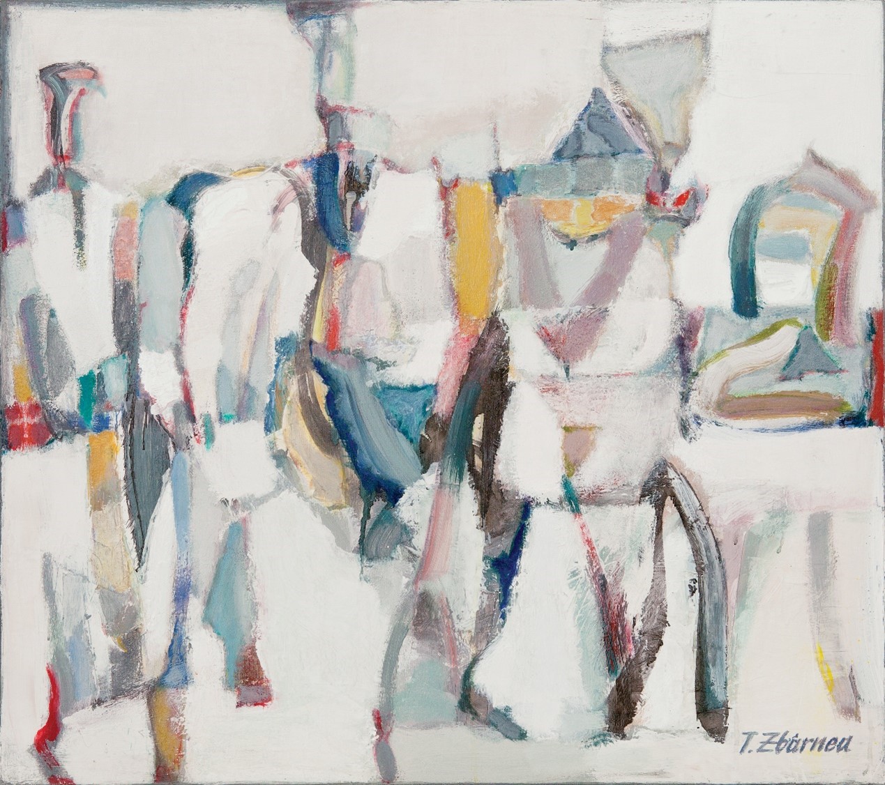 都铎·兹巴尔尼亚是摩尔多瓦著名画家,长期在艺术中探究独特的民族性,善于吸收、借鉴他国文化元素,以神话、民间传说以及人性为题材进行创作。他在作品中依靠感知和内省寻求物质和精神之间的平衡,远离世间烦扰俗事,赋予色彩纹理以多种意义,游弋于充盈与留白、光与影之间。在其艺术观念中,朴素的对立,主导着内心感受,也代表了戏剧性的矛盾。因此,他善用微妙的色彩搭配,以粗率的笔触排列色块,通过叠加、融合手法,将图像精神化,为作品注入美的张力,融汇了空间与时间,给系列作品带来人性的温度。