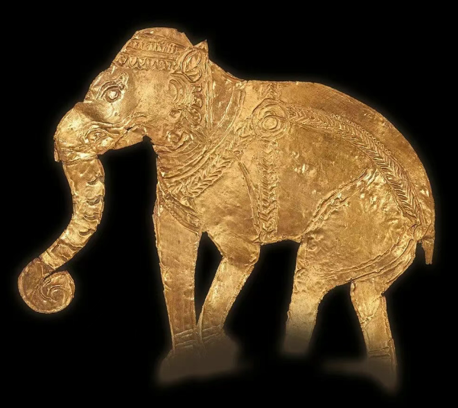 展览汇聚来自泰国11家国家博物馆及机构的众多珍品,包括班清国家博物馆彩陶漩涡纹罐、兰甘亨国家博物馆白地褐彩贴塑神像山墙装饰、昭三帕耶国家博物馆青铜施降魔印宝冠佛像与金嵌玻璃朱拉蒙固冠、泰国国家博物馆木雕贴金花叶纹宝座,以及文化部艺术局传统工艺办公室素攀纳洪号御船模型和孔剧面具等。故宫博物院亦精选多件藏品共襄盛举,如金叶表文、釉上彩神像纹碗、白色缎绣云蝠团龙纹男蟒、紫檀边座平金绣九龙屏风等。展览尾声特别呈现来自故宫博物院与泰国哈利奔猜国家博物馆的两尊吉象,既突显“象”题材在两国不同文化背景下共有的吉祥寓意,更以“象”为寓串联古今,凸显中泰友好交往的佳话所焕发出的时代光辉。