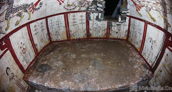 2018年8月,当地考古人员在太原市西中环南延工程旧晋祠路改造路段发现一座唐代壁画墓,太原市文物考古研究所与晋源区文物局组成考古队进行抢救发掘。该墓葬由墓道、墓门、甬道、墓室四部分组成,墓门、甬道及墓室四壁、墓顶、棺床均满绘壁画。