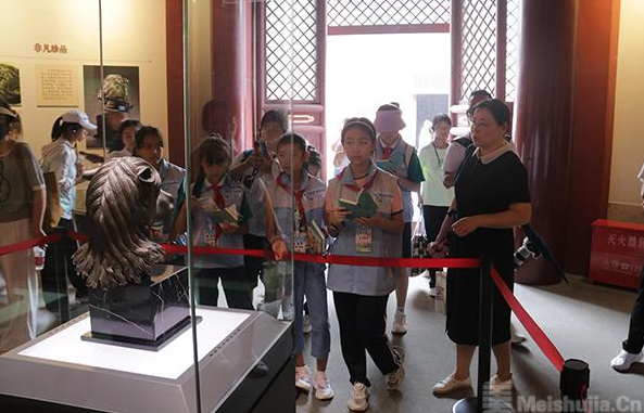 近年回归的马首正在展出,小记者们站在工艺精致的展品前,忍不住赞叹:“它的眼睛炯炯有神!”“它身上的每一根毛发都好精细啊!”陈辉还从文物保护的角度,完整地回顾了马首从设计到呈现在园林中,再到流失海外,最终在多方努力下归国的历程。