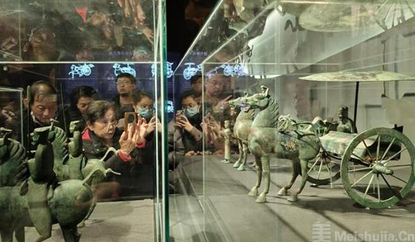 1月1日,天津博物馆,民众参观甘肃省博物馆“铜车马仪仗俑队”