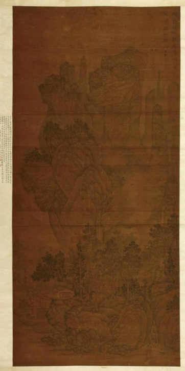 可以说,此幅山水画整体构图秉承了宋、元、明三朝之气韵。中近景的高峰,有宋画巨碑式的雄强峻峭,给人以山势险峻、气势磅礴的压迫感;中景的烟岚、瀑布、远山,则透露出元画的萧散明秀之气;近景的林木幽深、山路迂回、屋宇雅逸,笔墨秀润,又展现了明画的虚灵之感。