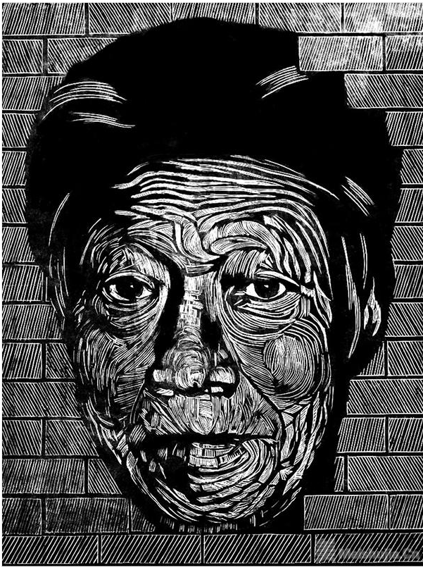 听说“大渠青梦——张伟元红旗渠百大工匠版画艺术展”在郑州美术学院举办,河南红旗渠干部学院特聘讲师周锐常,于3月底专程从林州赶到郑州参观。在一幅版画前,他忽然驻足,目光随着那深深浅浅的刻痕,陷入了对往事的回忆之中。