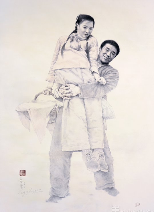 这种哲学也贯穿于其创作态度中。他强调,素描训练的本质是培养“观察世界的眼睛”。从衣纹褶皱的取舍到人物神态的提炼,每一次落笔都是对现实的再创造。“若对造型研究不足,油画创作便会暴露短板。”他临摹赫尔拜因的精准线条、安格尔的优雅简淡,从中领悟“以线塑形”的智慧,最终将大师经验融入个人语言,形成兼具写实性与诗意的风格。