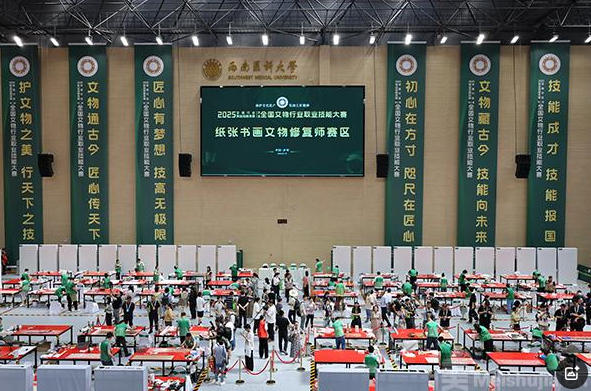 这是四川泸州举办的2025年全国行业职业技能竞赛——第二届全国文物行业职业技能大赛比赛现场。参赛选手年龄跨度从19岁到59岁。“初入江湖”的在读大学生和“择一事,终一生”的五旬老师傅,共同在指尖上诠释工匠精神。