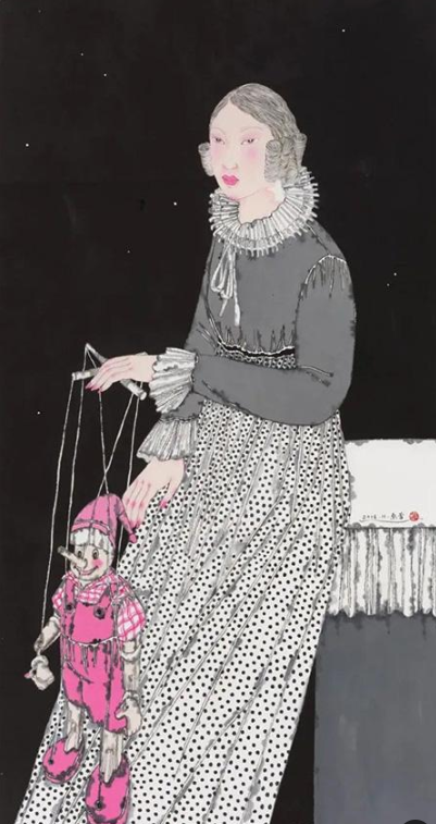《消逝的光年——偶人之二》 136×68cm 纸本设色 2016年