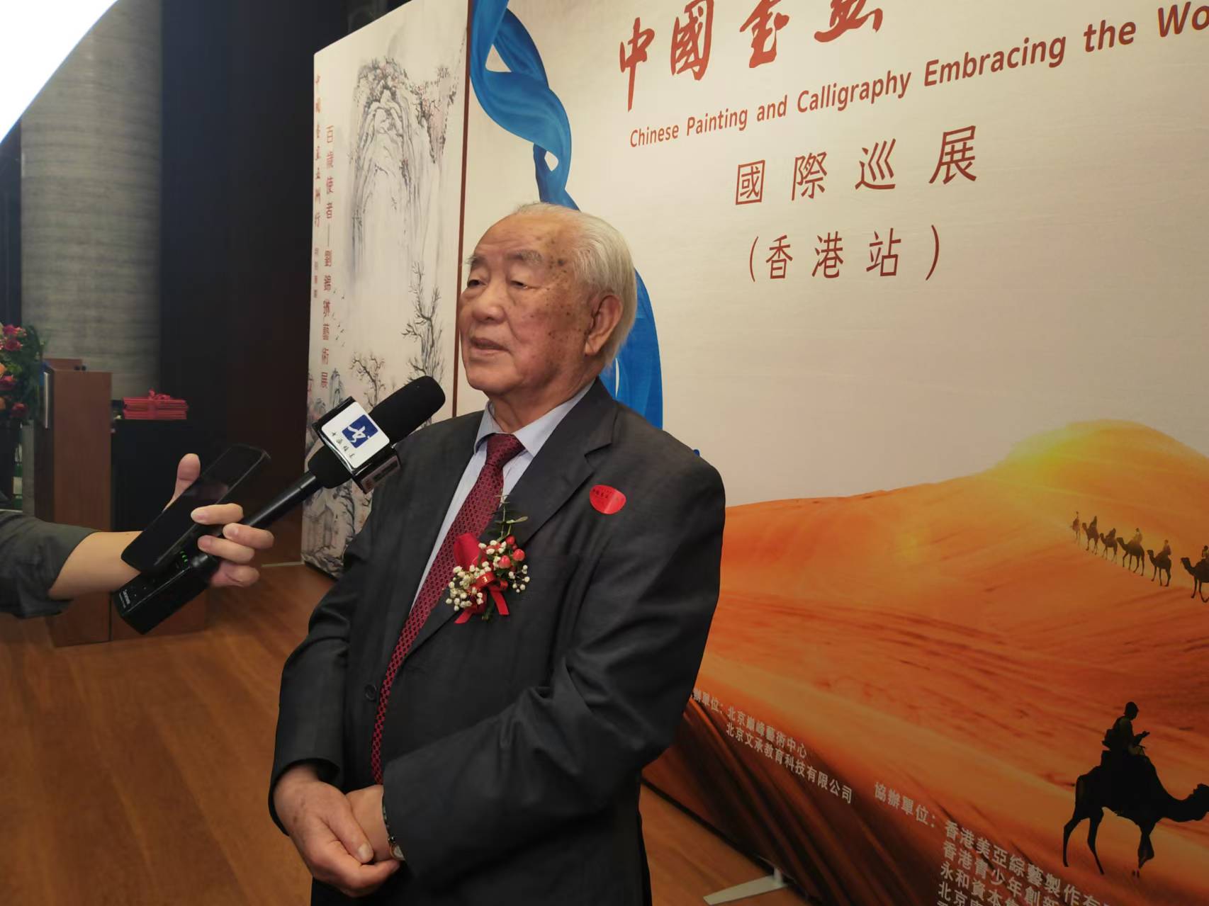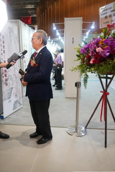 第十届全国人大代表、香港两岸和平发展联合总会首席会长林广兆,第十三届、十四届全国政协委员、香港美亚集团董事局主席李国兴,中华文化促进会驻会副主席陈钢,香港立法会议员郭玲丽,原国务院参事、香港《大公报》原社长王国华,香港两岸和平发展联合总会理事长沈墨同,香港中文大学教授学愚,五洲和平书画院副院长、中影集团演员剧团团长臧金生,中国佛教协会原副秘书长桑吉扎西,香港青少年创新发展基金会常务副会长陈良勇,重庆政协香港委员向均羚,香港宝声集团董事长陈耀璋,百岁使者刘锦琳亲属徐晓力、仲相宜,香港屯門鄉事委员会副主席曾展雄,汕尾同乡会永远名誉会长林绍禄,比利时世界文化艺术交流中心主任陆惟华,五洲和平书画院执行院长、北京巅峰艺术中心主任刘文迪,香港中华文化推广交流协会会长陈金儿为开幕式剪彩。