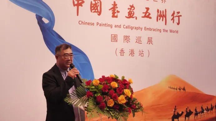 中影集团演员剧团团长、北京五洲和平书画院副院长臧金生代表北京五洲和平书画院高级顾问、致公党中央原副主席、全国人大、全国政协原常委杨邦杰在开幕致辞时指出:“中国书画五洲行”国际巡展来到东方之珠,意义十分重大。香港是中西文化的交汇之地,五洲和平书画院要活用香港的独特优势,发挥民间文化交流优势,充分利用华人华侨广泛的人脉资源,让中国更多优秀书画作品走向世界,让世界更全面地了解中国书画文化,为提高我国文化软实力、促进世界和平稳定作出应有贡献。
