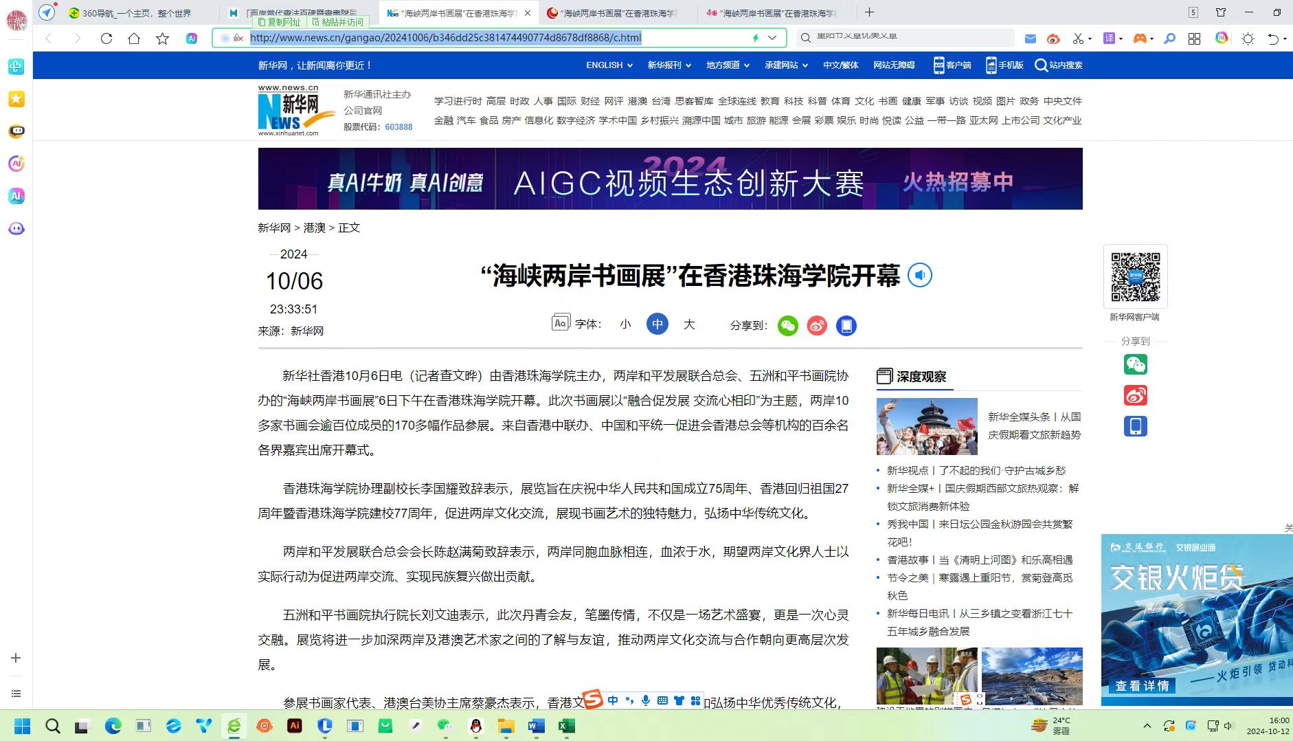 此次书画展活动有多家媒体进行跟踪报道,以下是部分媒体的相关报道。