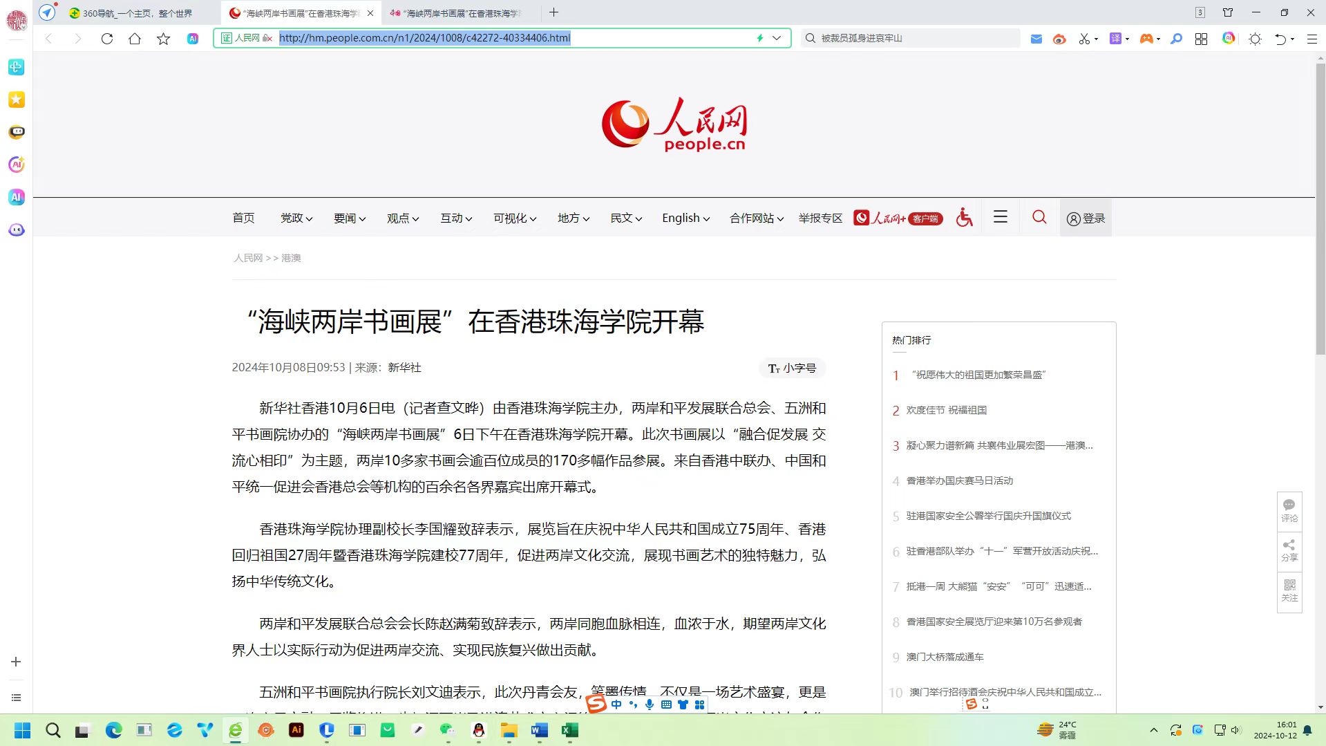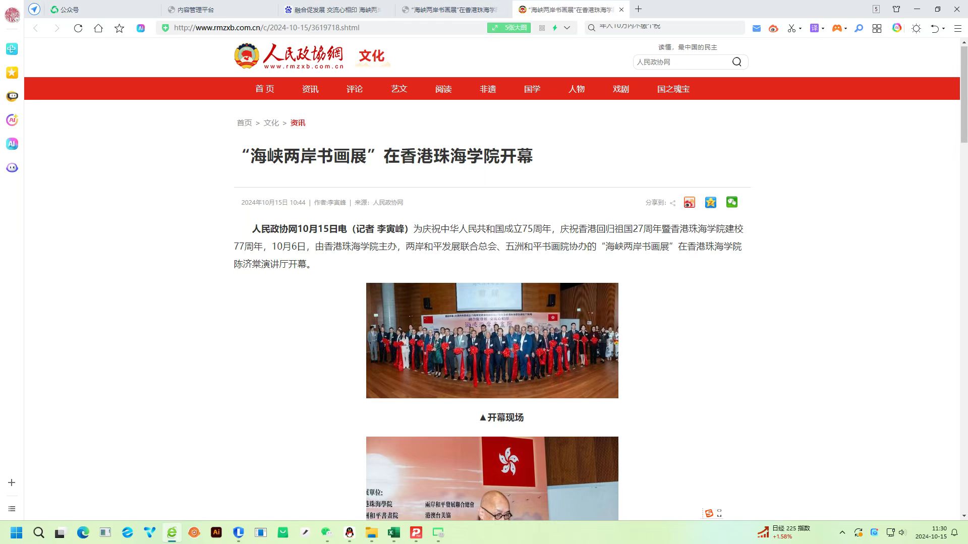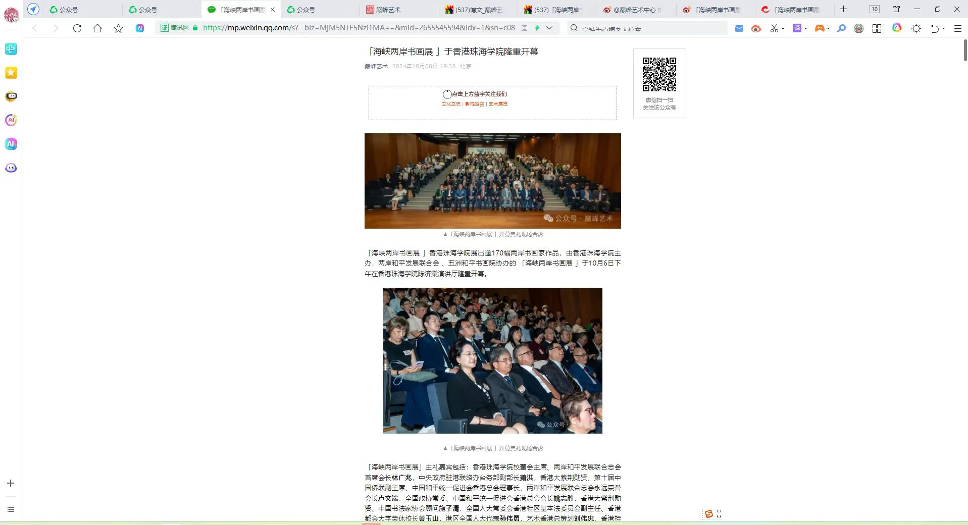 为庆祝中华人民共和国成立七十五周年,香港回归祖国二十七周年暨香港珠海学院建校七十七周年,由香港珠海学院主办,两岸和平发展联合总会 、五洲和平书画院协办的 “融合促发展 交流心相印 ”海峡两岸书画展于10月1日至22日在香港珠海学院苏秀莲展览厅隆重举行。书画展活动取得了优异的传播效果,赢得了积极的社会反响。